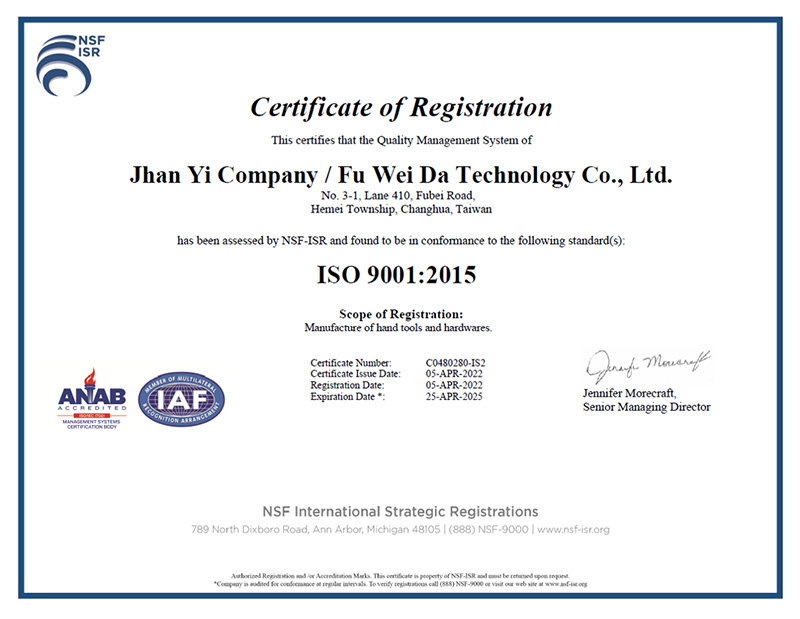 我們為了提升加工品質及完善的品質管理系統,於2019年取得通過ISO9001認證。